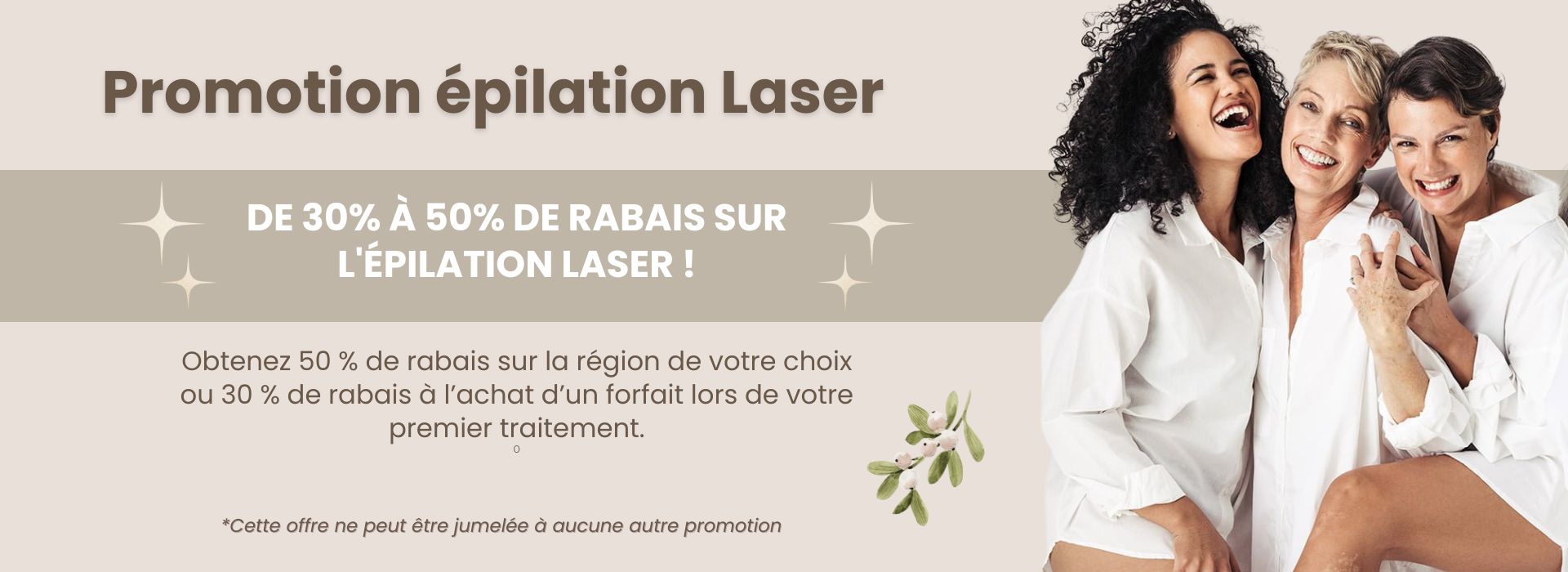 Obtenez 50% de rabais sur la région de votre choix ou 30% de rabais à l’achat d’un forfait lors de votre premier traitement d’épilation laser.